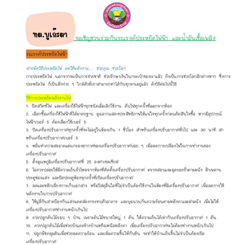 เชิญชวนร่วมกันรณรงค์ประหยัดไฟฟ้าและน้ำมันเชื้อเพลิง